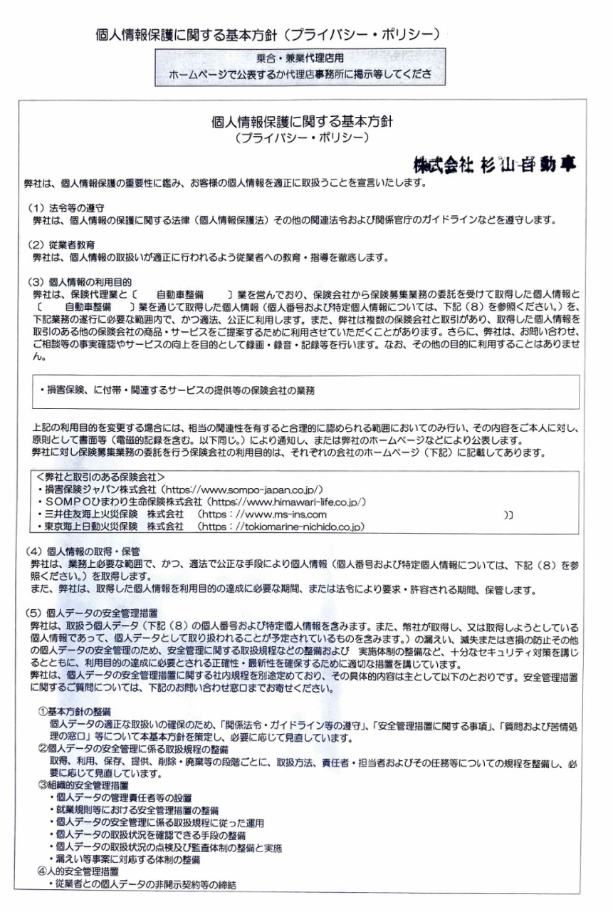 ※取扱保険会社: 損害保険ジャパン・三井住友海上火災保険 (当社は両社の代理権を有しています)